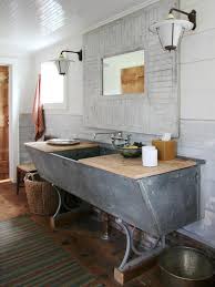 Bullins painstakingly gutted the motor to accommodate plumbing; he also routed out the wood countertop surface and embedded an old wood fishing lure in clear resin for added effect. “A lot of my work looks simple, but it isn’t,” he says. “Fabrication and execution can be a real challenge. But I hope I inspire people to be creative — don’t be afraid to take the first step!” If you live near a winery, you may be sitting on an upcycling gold mine. Real oak wine barrels make beautiful furniture — craftsman John Koering painstakingly refitted this barrel as a vanity for Premier Copper Products, which sells the striking hammered copper vessel sink used here. Prepping a wooden barrel for a humid bathroom requires special care, so don’t go plopping a sink into one without researching the finer points of finishing and sealing. Erin Rodriguez of the blog Welcome Home scored both an old potting table from Craigslist and a salvaged sink from a local shop for her bathroom vanity.