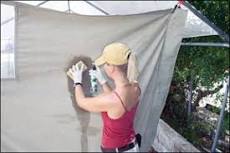 Less-toxic chemicals like ammonium chloride are less effective at eliminating resistant molds but are less harsh on fabric and humans. Once mildew appears, Practical Sailor recommends first trying a mix of mild soap and water to remove the mildew. The second line of defense is a chlorine-free mildew cleaner. Because some materials�like vinyl and stitching�can be damaged by repeated exposure to chlorine/bleach, it�s always a good idea to try removing the stains with less aggressive cleaners first (no chlorine or low chlorine). If that doesn�t work�and the material being cleaned isn�t affected by chlorine�try a more potent chlorine-based cleaner or a solution of 10 percent household bleach and 90 percent water to spot clean the stain; rinse thoroughly with fresh water and dry the area. Some chemicals that eliminate mildew are considered pesticides, and may contain chemicals that can be harmful to people, animals, or the environment. For this reason, the U.S. Environmental Protection Agency�s Office of Pesticide Programs regulates pesticides in the United States to protect public health and the environment.