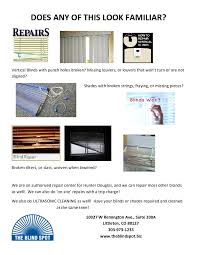 Replacement hinges & magnets Silhouete® / Vignette® / Pirouette® Broken cont cord loops & clutch mechanisms HD LR & UG Replacement brackets / limit stops / end caps Troubleshooting $60 / hr. Replacement beaded chain & clutch HD LR / UG Re-tape fabric to roller $45 minimum repair charge, including $15-20 per string re-string fee for most shades. We will call you with a quote prior to completing any work.VENETIAN blinds contain two separate operating mechanisms, each of which is actuated by a separate control cord - the lift cord and the tilt cord. Each of these does exactly what its name implies: The lift cord raises the slats from the bottom up when you pull down on the looped end that hangs down on one side of the blind; and the tilt cord serves to tilt the slats open or closed. Pulling down on one end of the tilt cord causes a pulley inside the headbox to rotate, and this in turn activates a worm gear that tilts the ''ladders'' at each end of the blind (rope or tape) that support the individual slats.